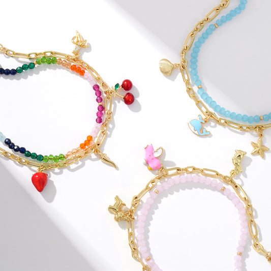 KissYan Beaded Layered Pendant Necklace with Link Chain