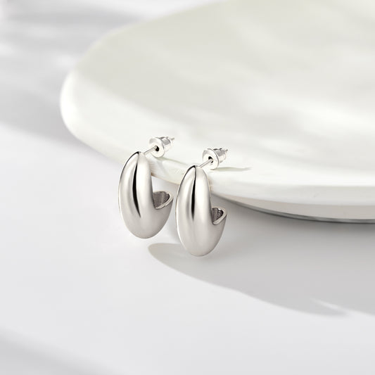 14K Gold Plated Lightweight Chunky Gold Hoop Earrings- Dome Huggie Hoop