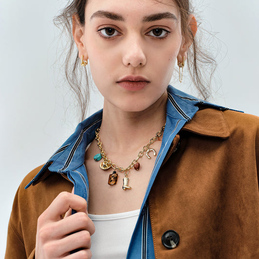 KissYan Cowgirl Western Charm Boot Horseshoe Turquoise Pendant Necklace