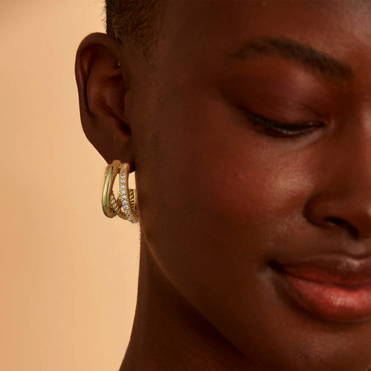 14K Gold Plated Cubic Zirconia Triple Open Hoops C Shape Wrap Earrings