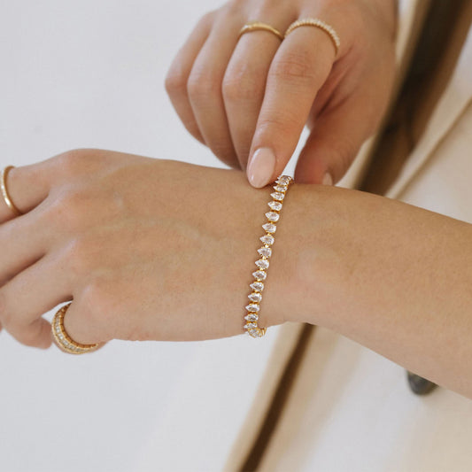 Adjustable Slider Teardrop Diamond Tennis Bracelets-White CZ