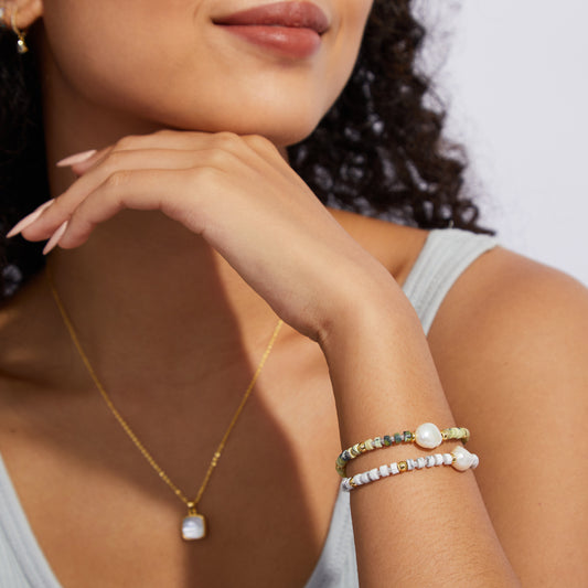 Adjustable Healing Crystal Bracelet Natural Howlite Gemstone Beads with Irregular Pearl