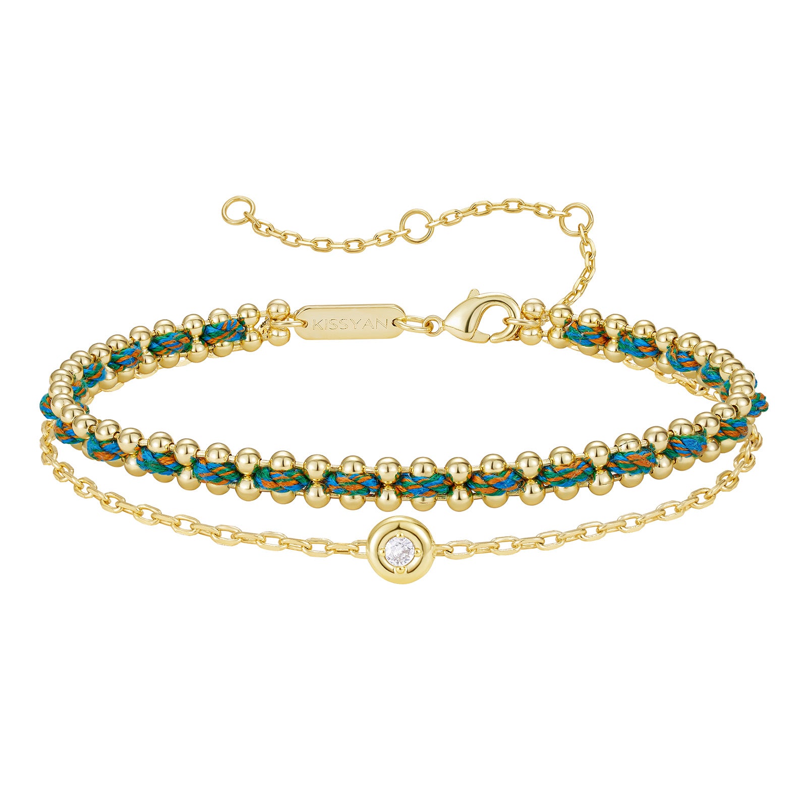 KissYan Adjustable Sports String Stackable Bracelet 14K Gold Plated