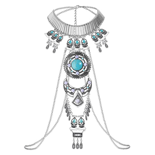 Boho Statement Turquoise Necklace Dancer Necklace Crossover Harness Bikini Waist Belly Sexy Body Chains for Women