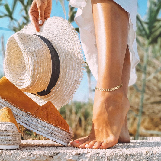Dainty 14k Gold Plated Layering Evil Eye Anklets Set- Oval Evil Eye+Fishbone