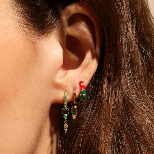 Dainty Dual-color Enamel Small Hoop Colorful Cute Huggie Earrings-Red-Green