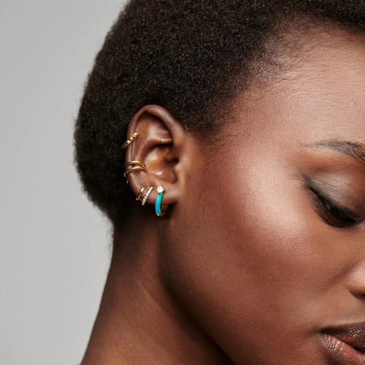 Gold Huggie Enamel Earrings Colorful Small Hoop Cuff Earrings-Teal