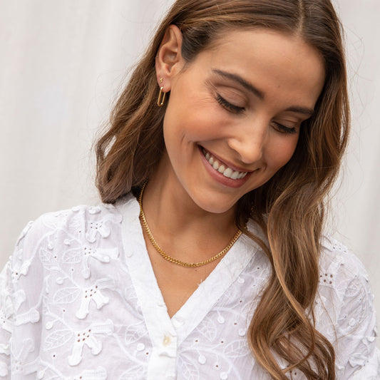14K Gold Layering Letter Pendant Paperclip Link Chain Necklace-Round