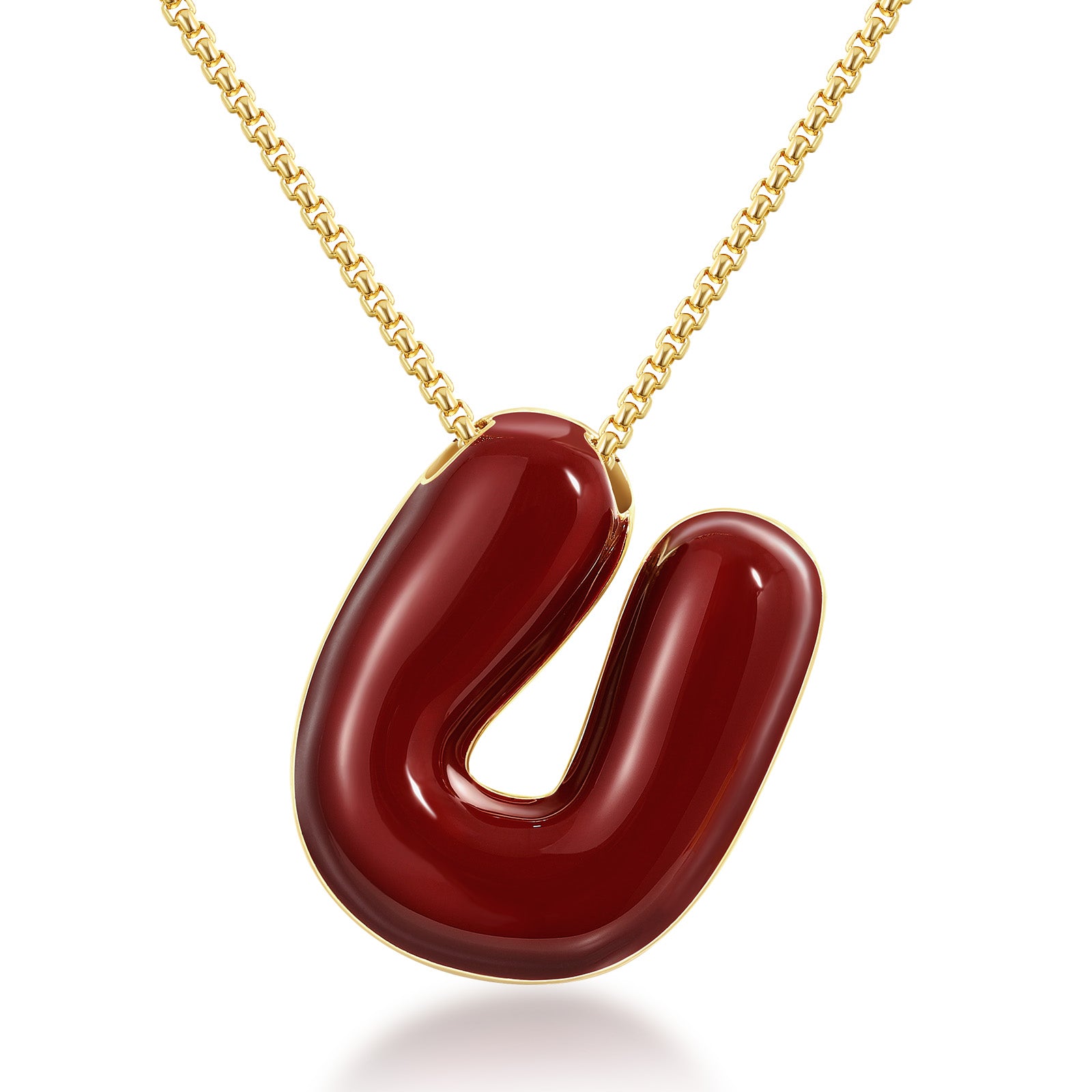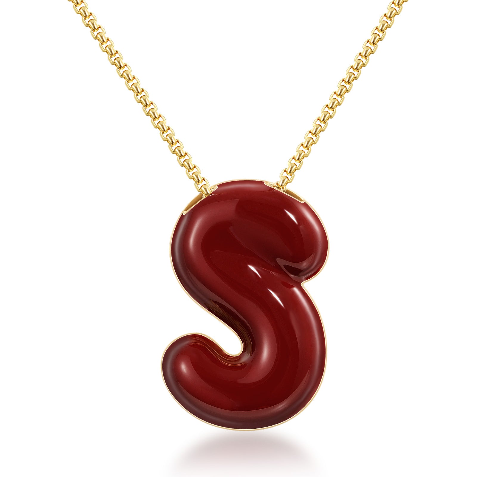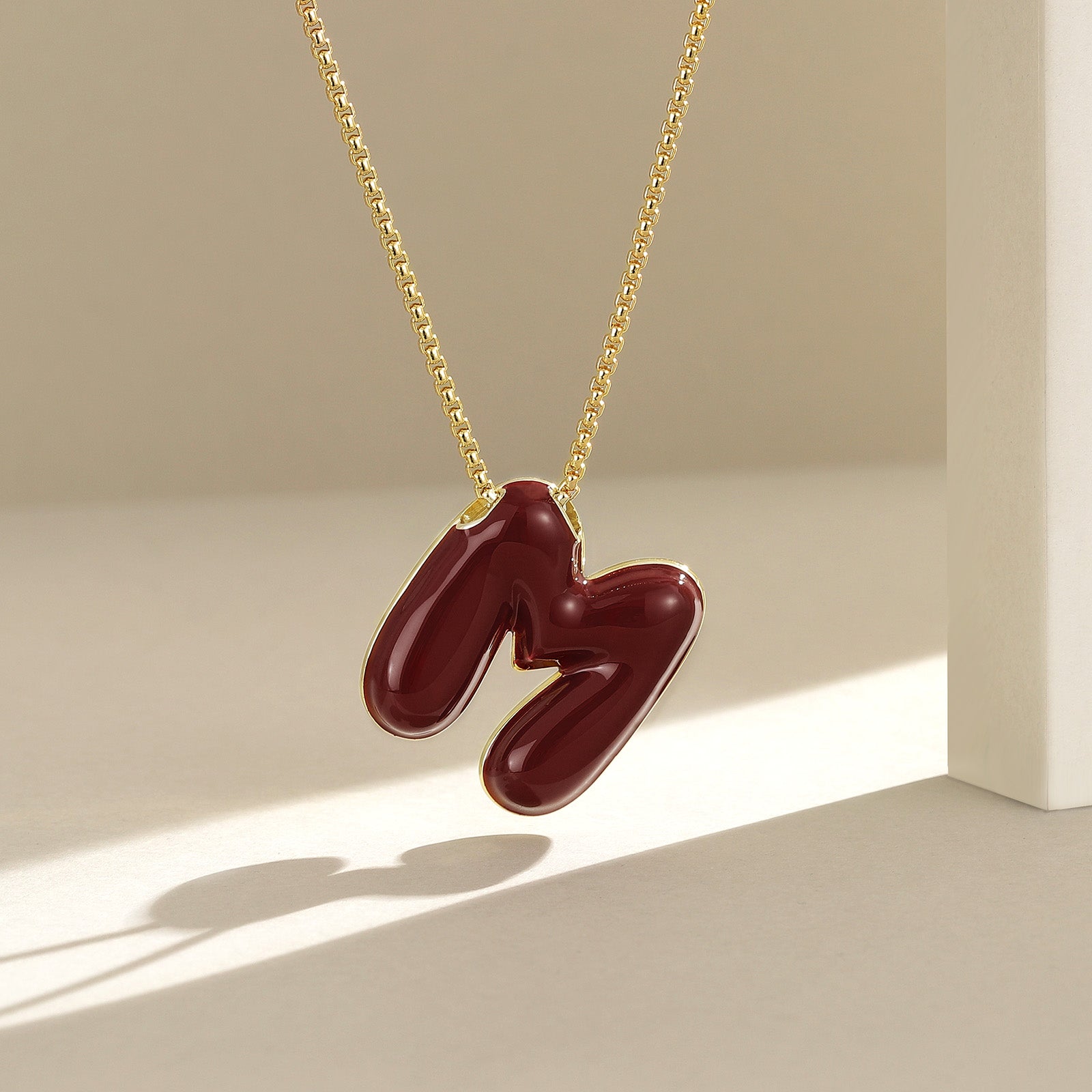 14K Gold Plated Enamel Initial Pendant Letter Necklace