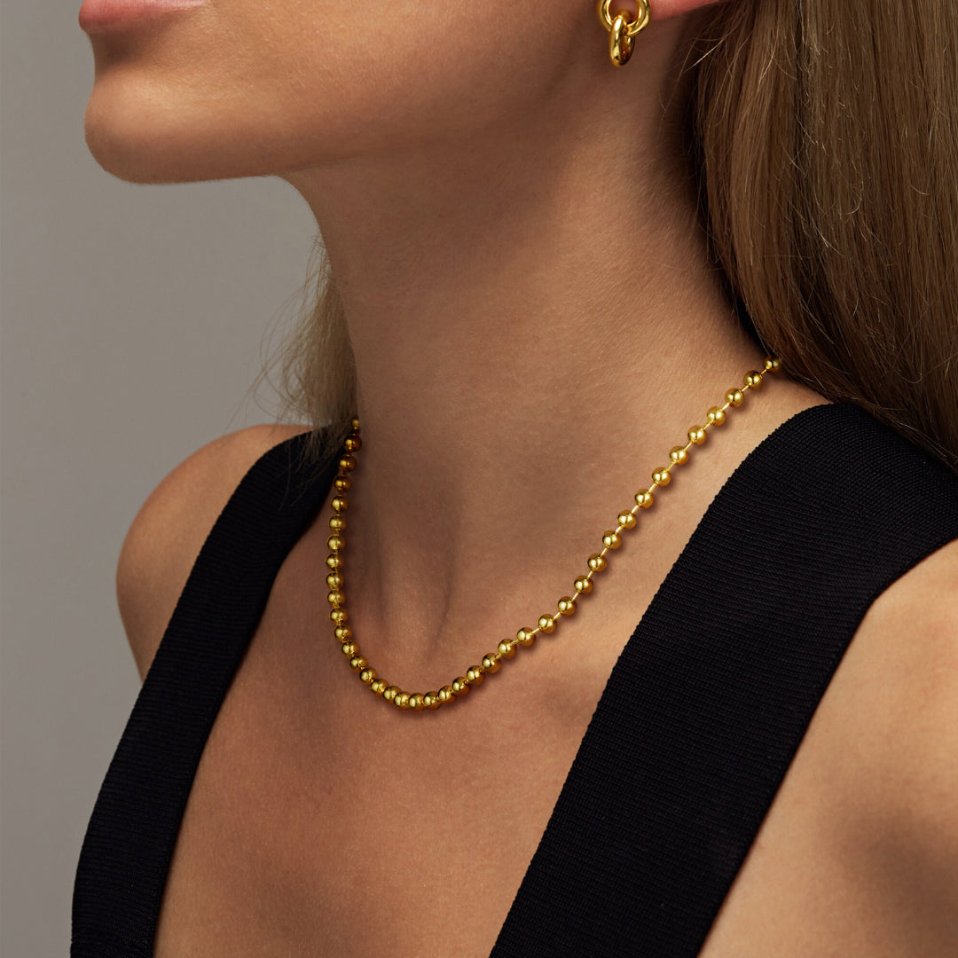 Our Beaded Choker Necklace crafted with delicate beads and a sleek ball chain, the adjustable length allows you to customize the fit, while the classic design complements any outfit with ease.