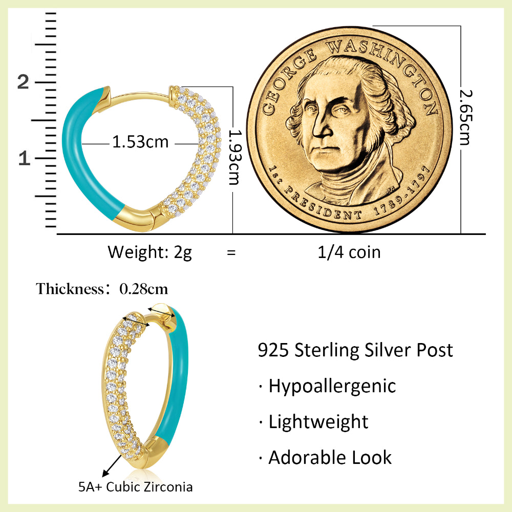 Experience the allure of heart-shaped earrings that symbolize deep emotions and impeccable style. These huggie hoop earrings feature a delicate heart-shaped enamel pendant, exquisitely crafted with attention to detail. The enchanting blue enamel adds a touch of sophistication and vibrancy to your look, making them the perfect accessory to express your individuality.