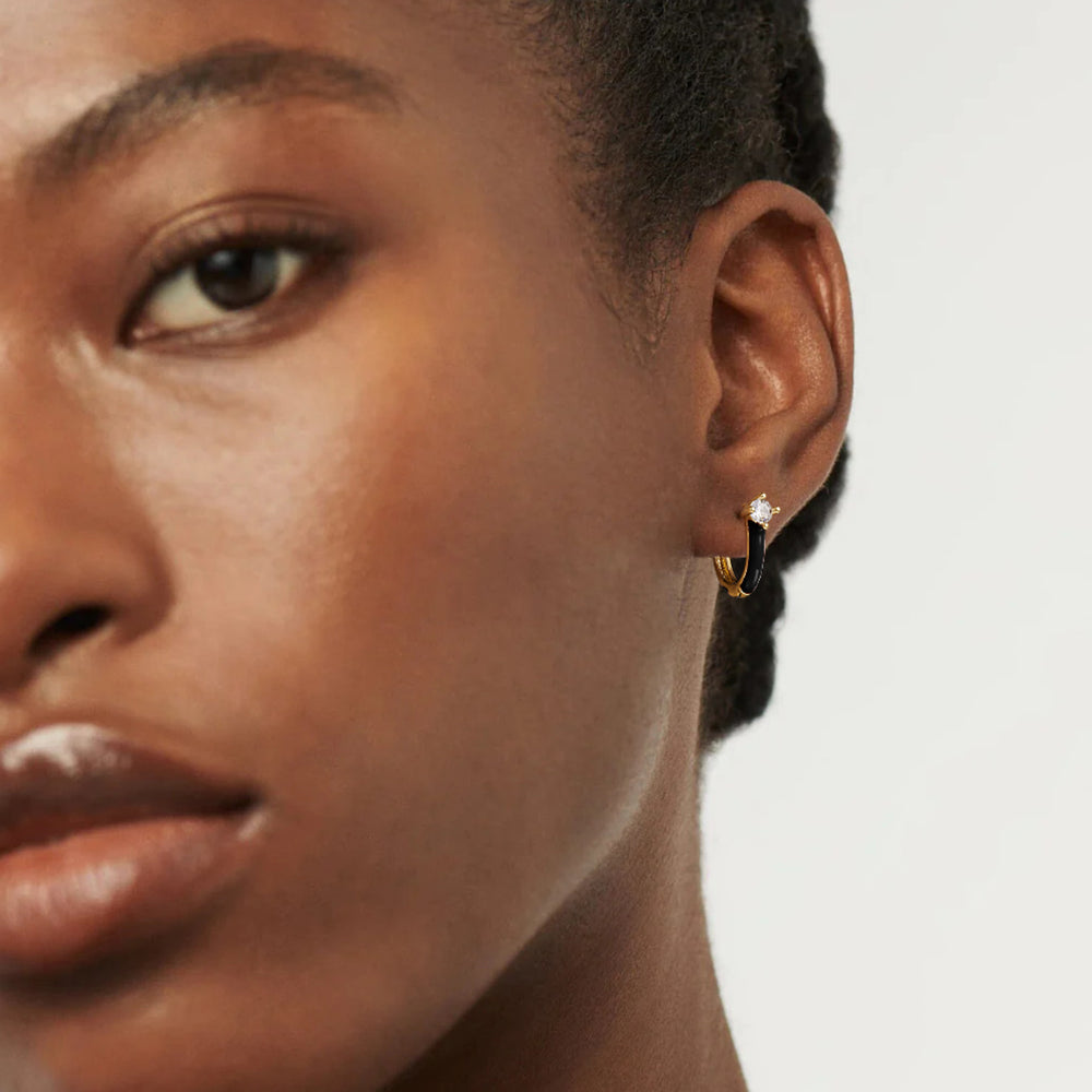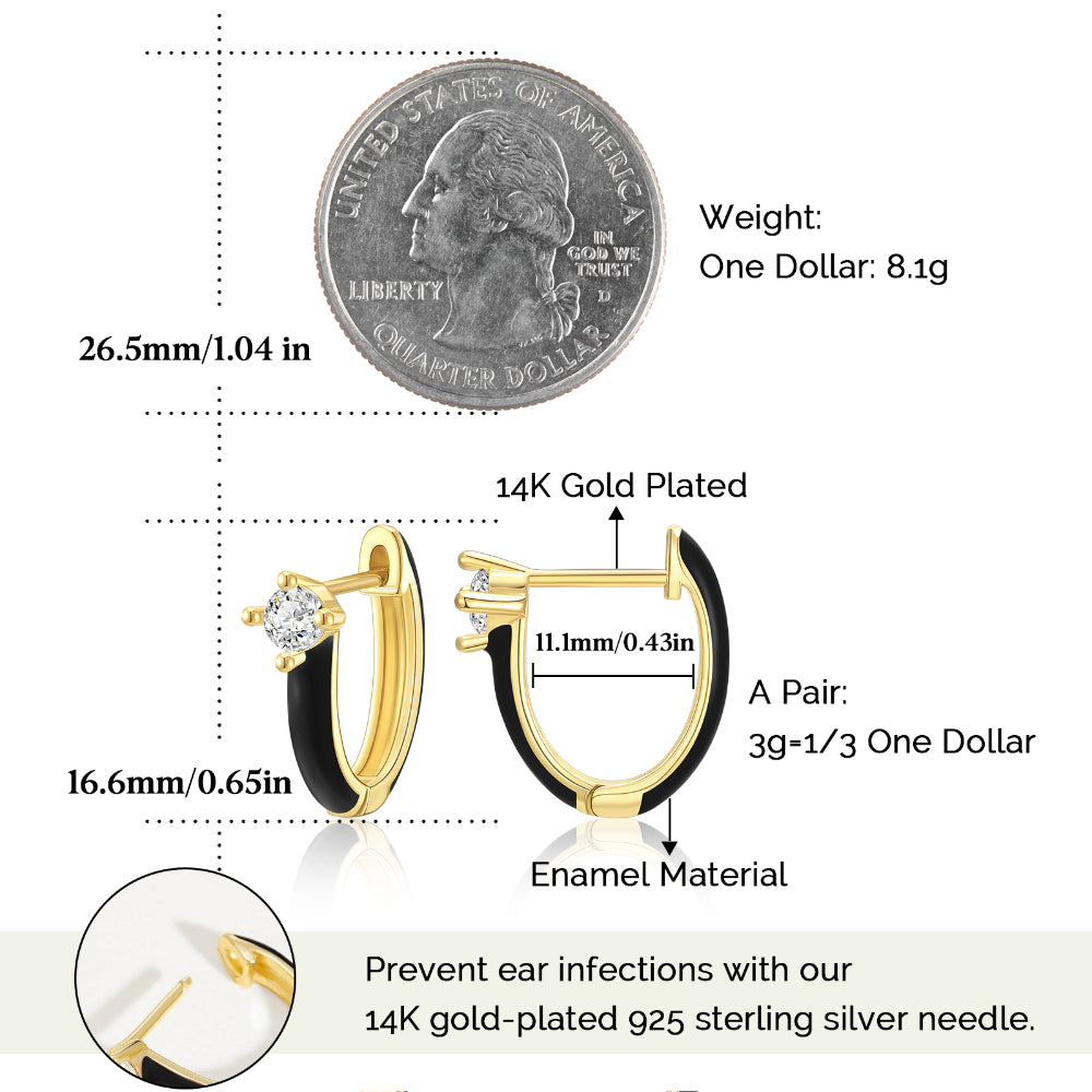 Gold Huggie Enamel Earrings Colorful Small Hoop Cuff Earrings-Black