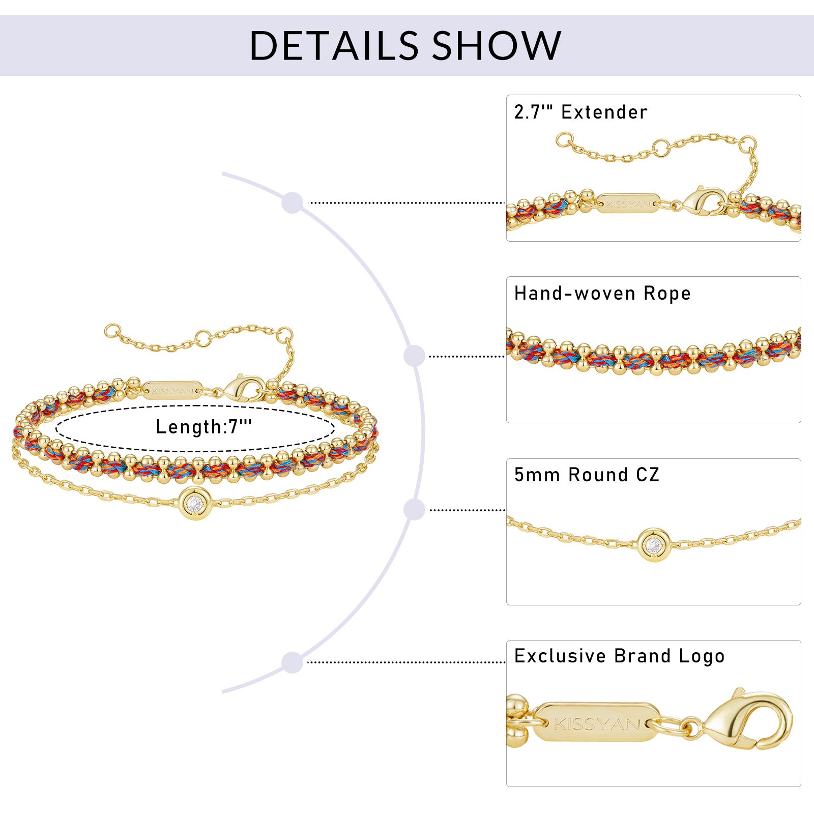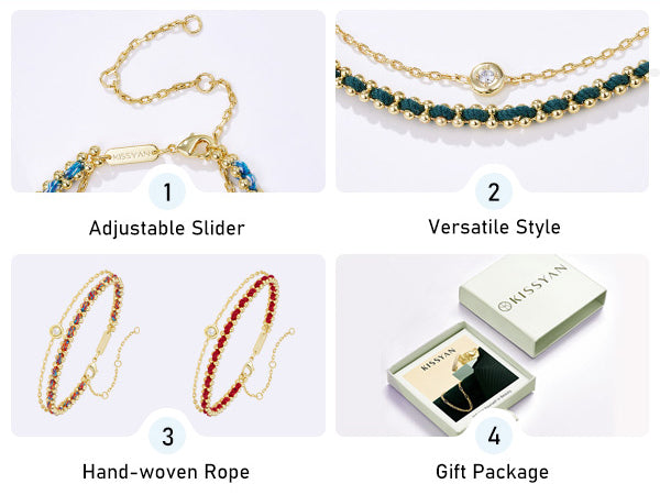- Exquisite Craftsmanship: This string bracelet features high-quality braided rope, 14K gold-plated beads, sparkling zircon pendants, bright, not easy to fade in water, gentle on sensitive skin, and combines natural beauty with durable elegance