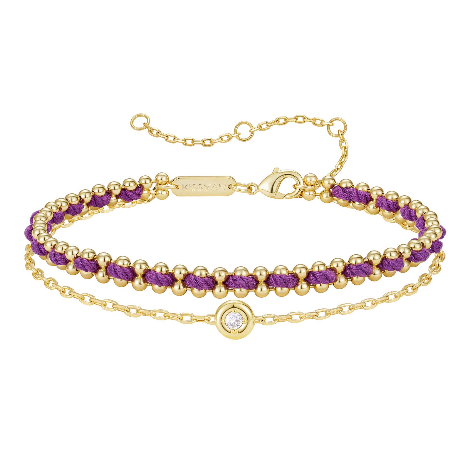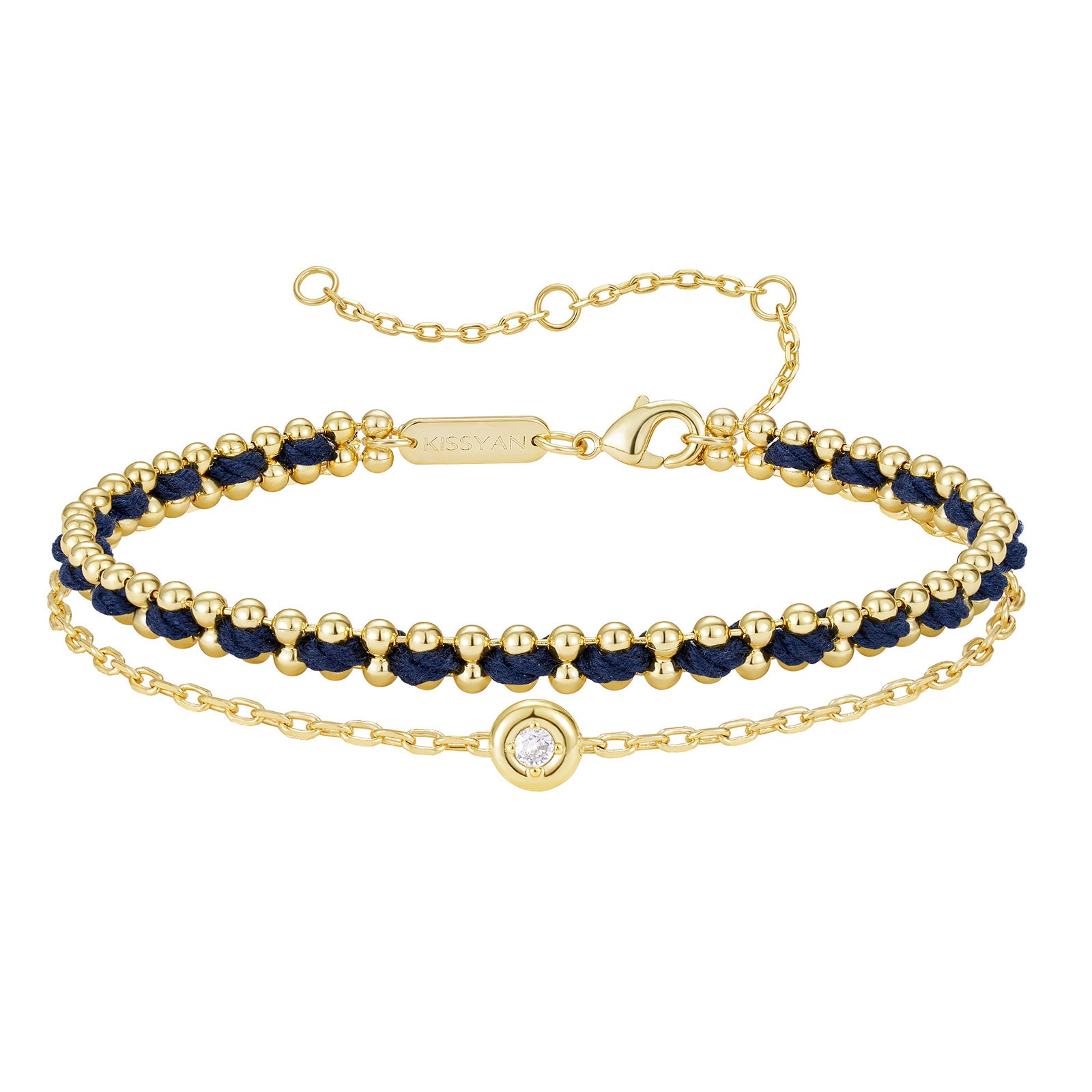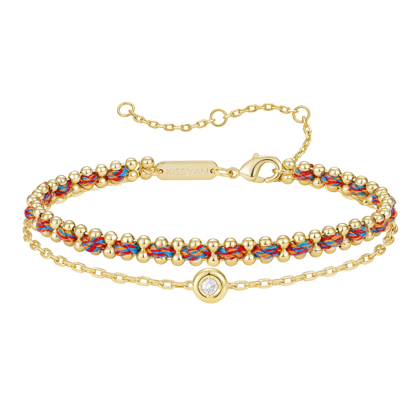 KissYan Adjustable Sports String Stackable Bracelet 14K Gold Plated