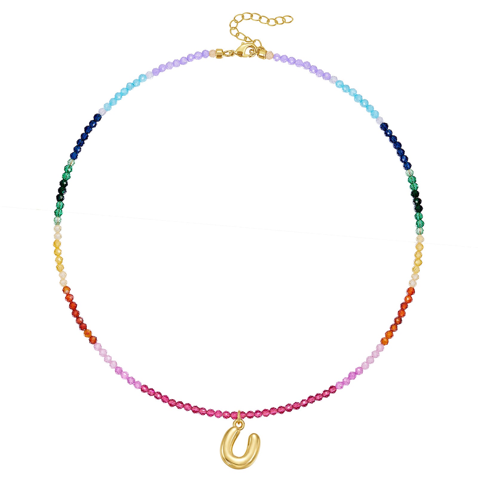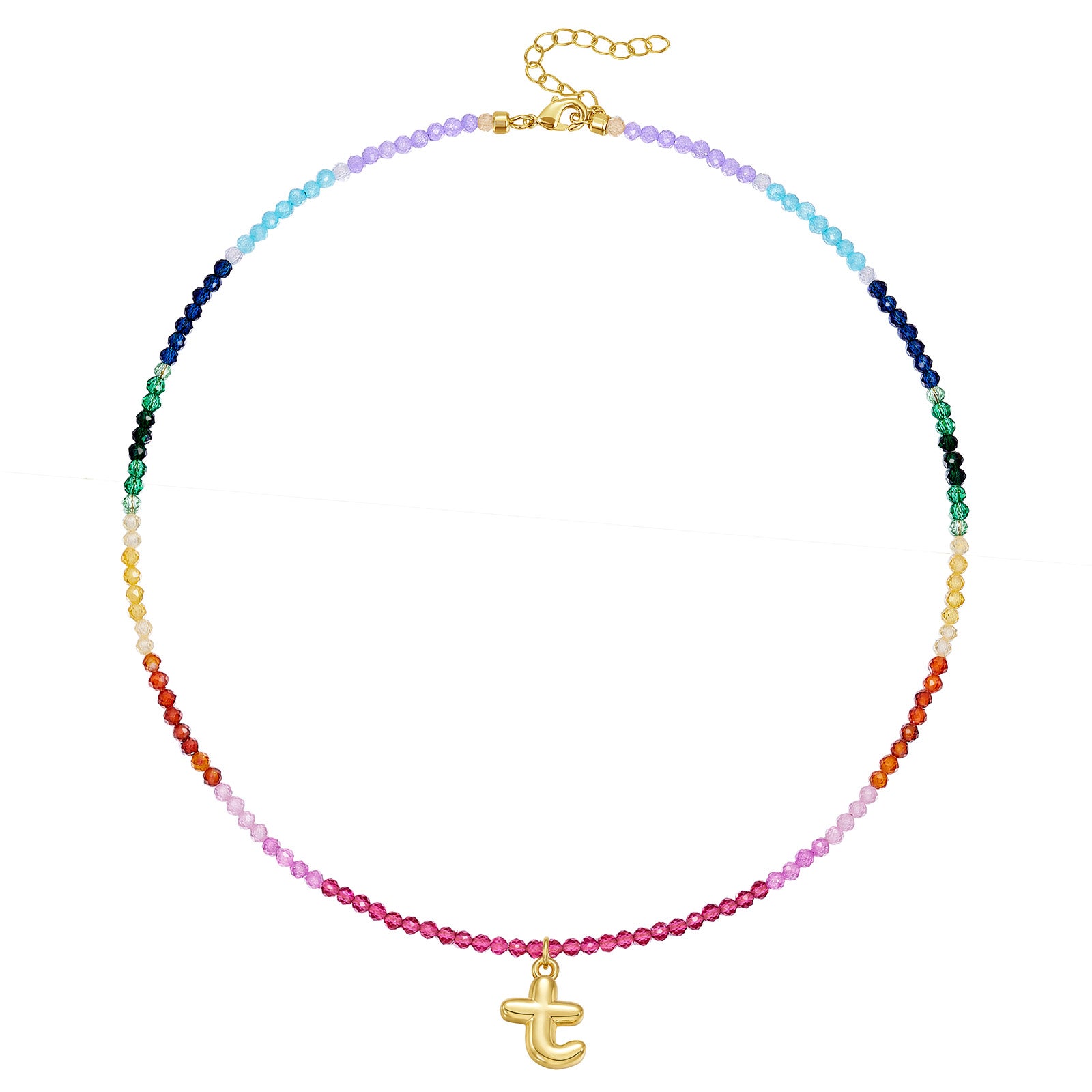 KissYan Beaded Bubble Letter Pendant Rainbow Gemstone Choker