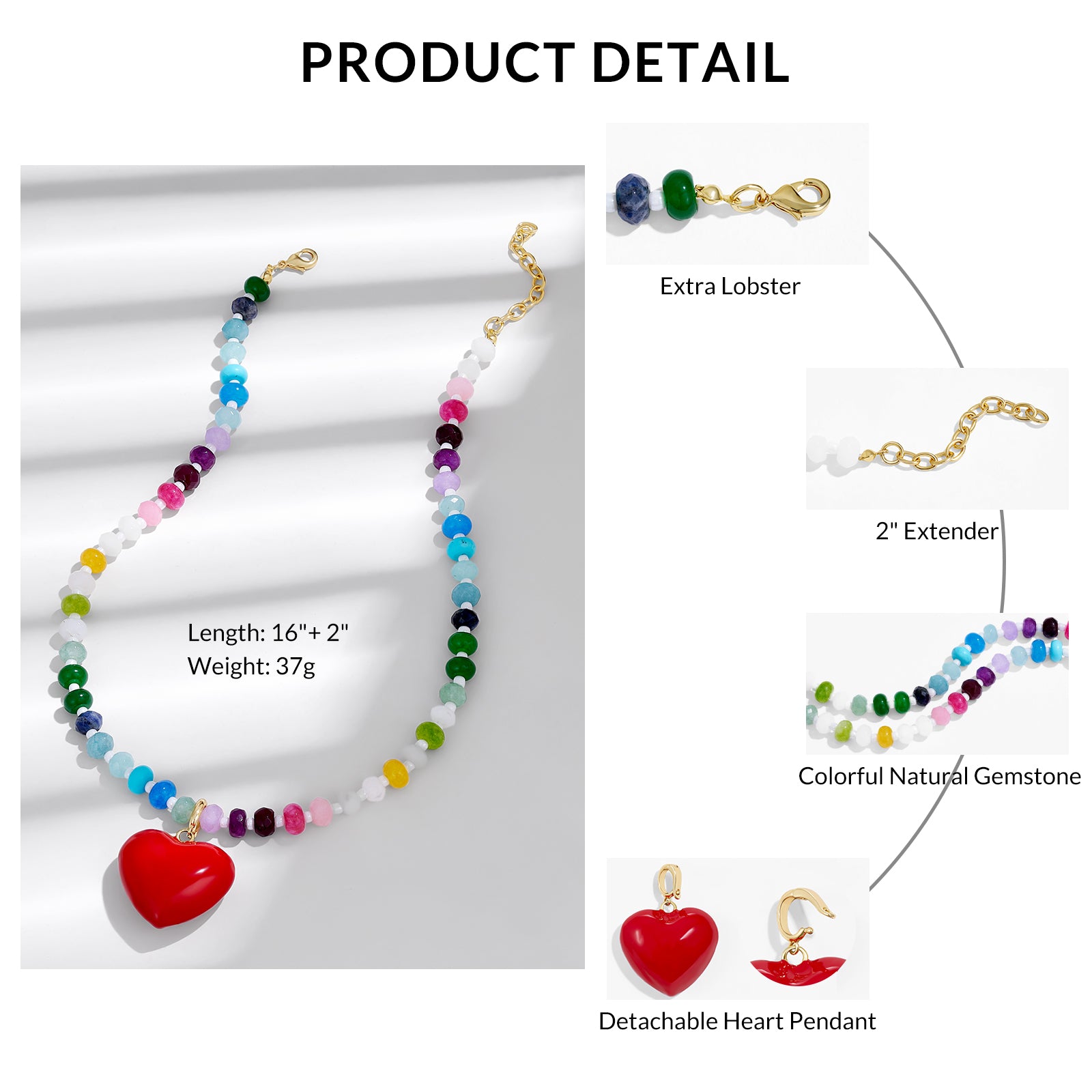 - Premium Materials: Our heart pendant is made of high-quality brass material, the chain is made of natural stones, which are finely polished to have a long-lasting and bright luster, and are not easy to fade. no lead and no nickel, hypoallergenic properties