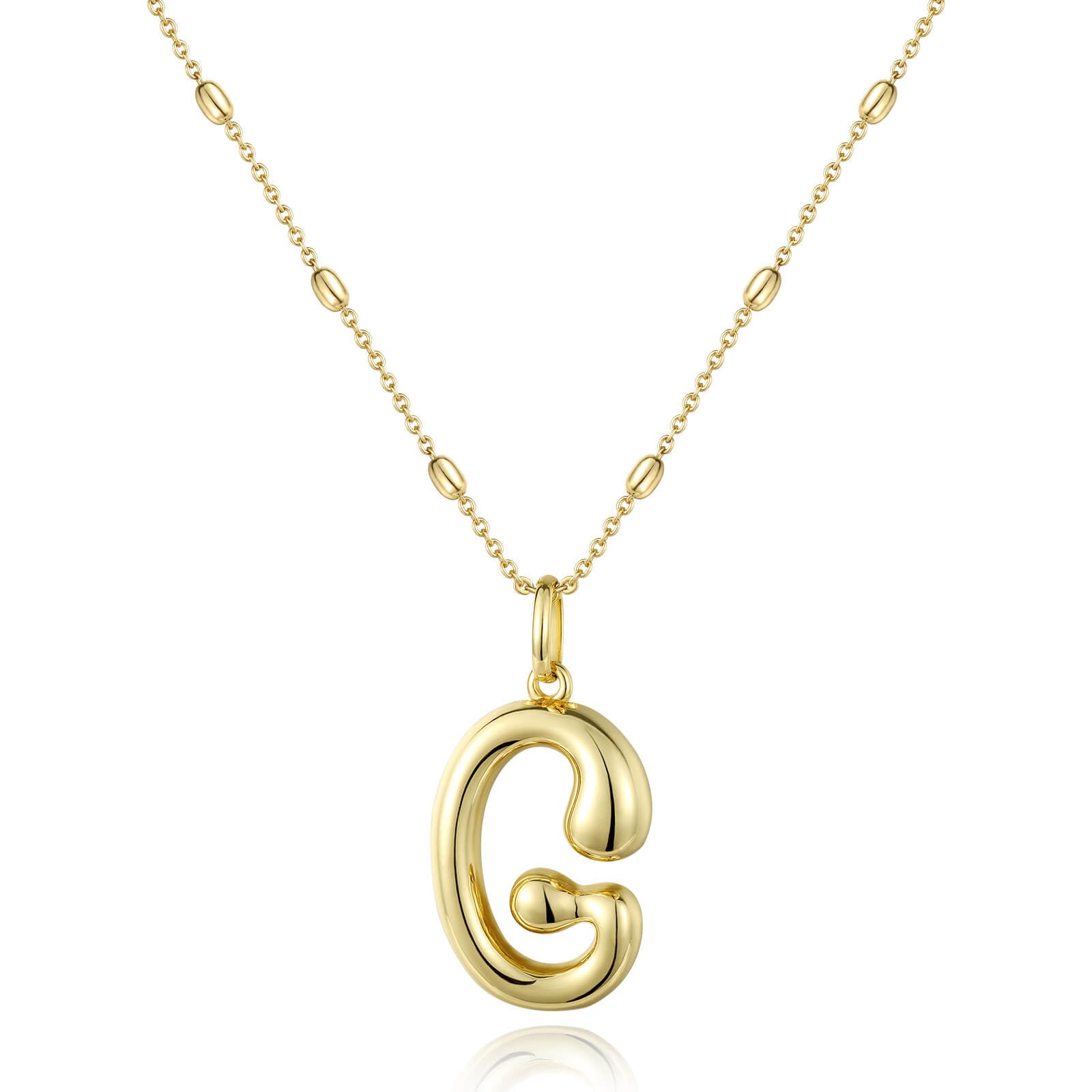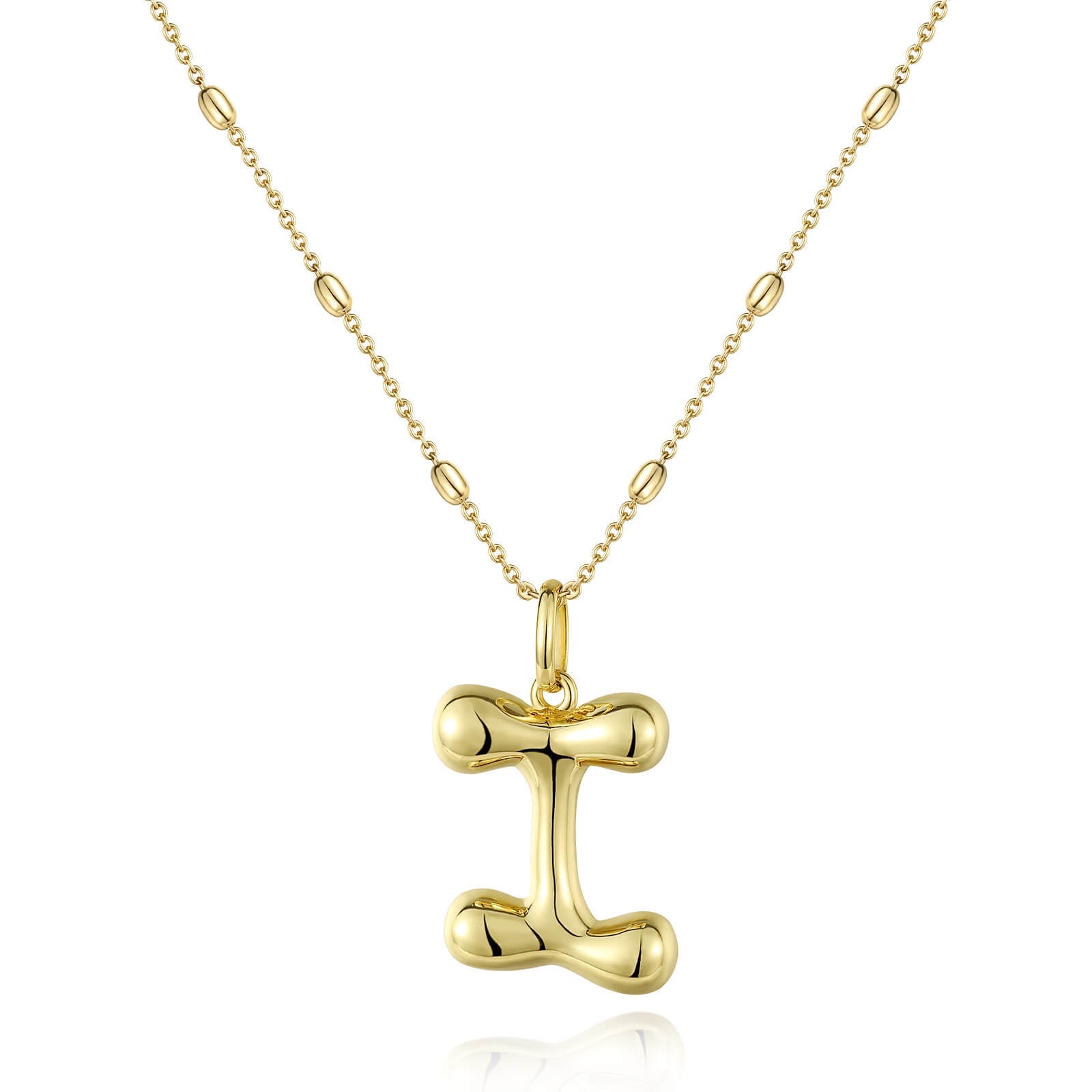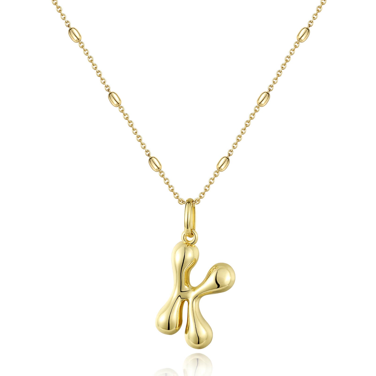 KissYan Bubble Letter Necklace,14K Gold Plated Balloon Initial Pendant with Bead Chain Dainty Jewelry Gift for Women