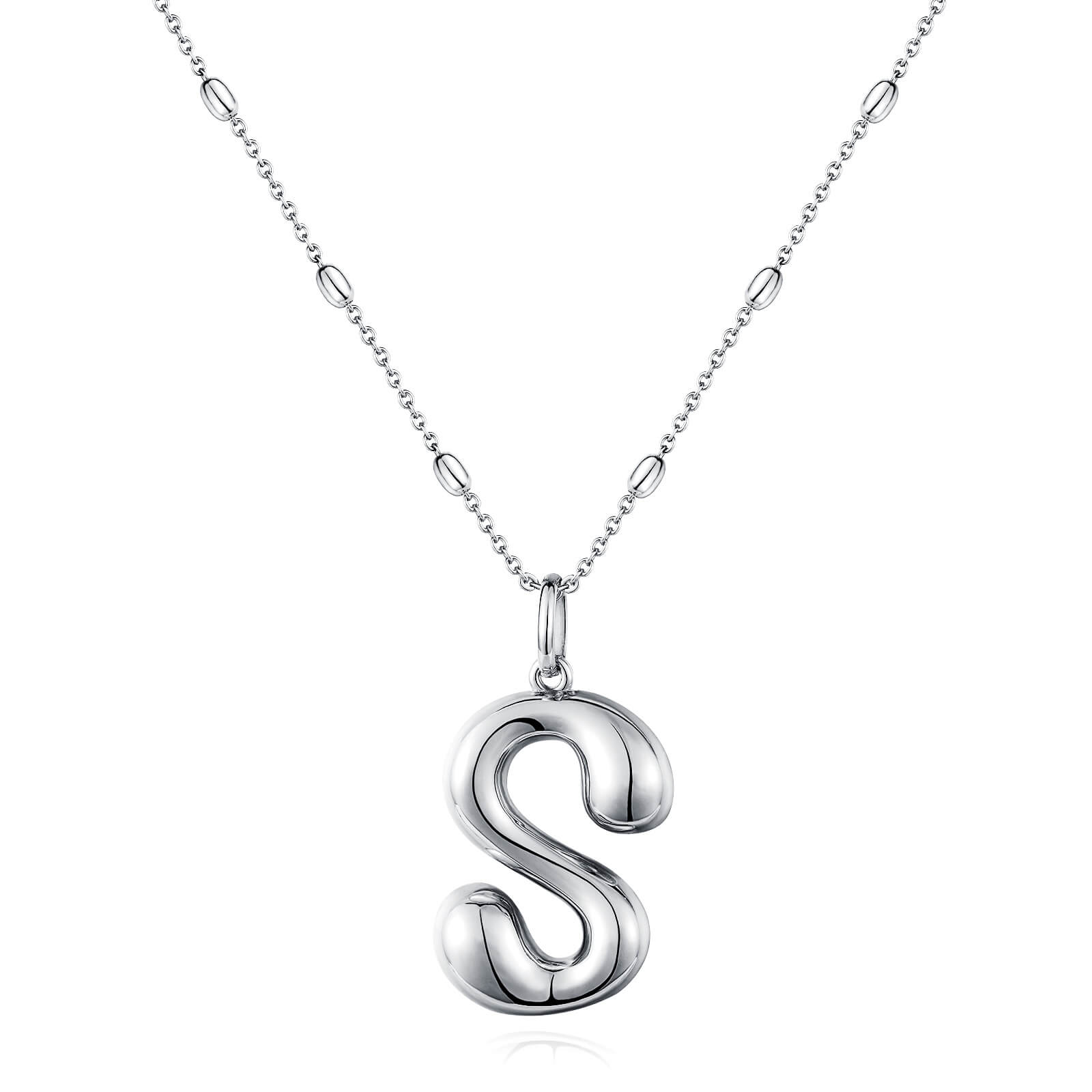 KissYan Bubble Letter Necklace,14K Gold Plated Balloon Initial Pendant with Bead Chain Dainty Jewelry Gift for Women
