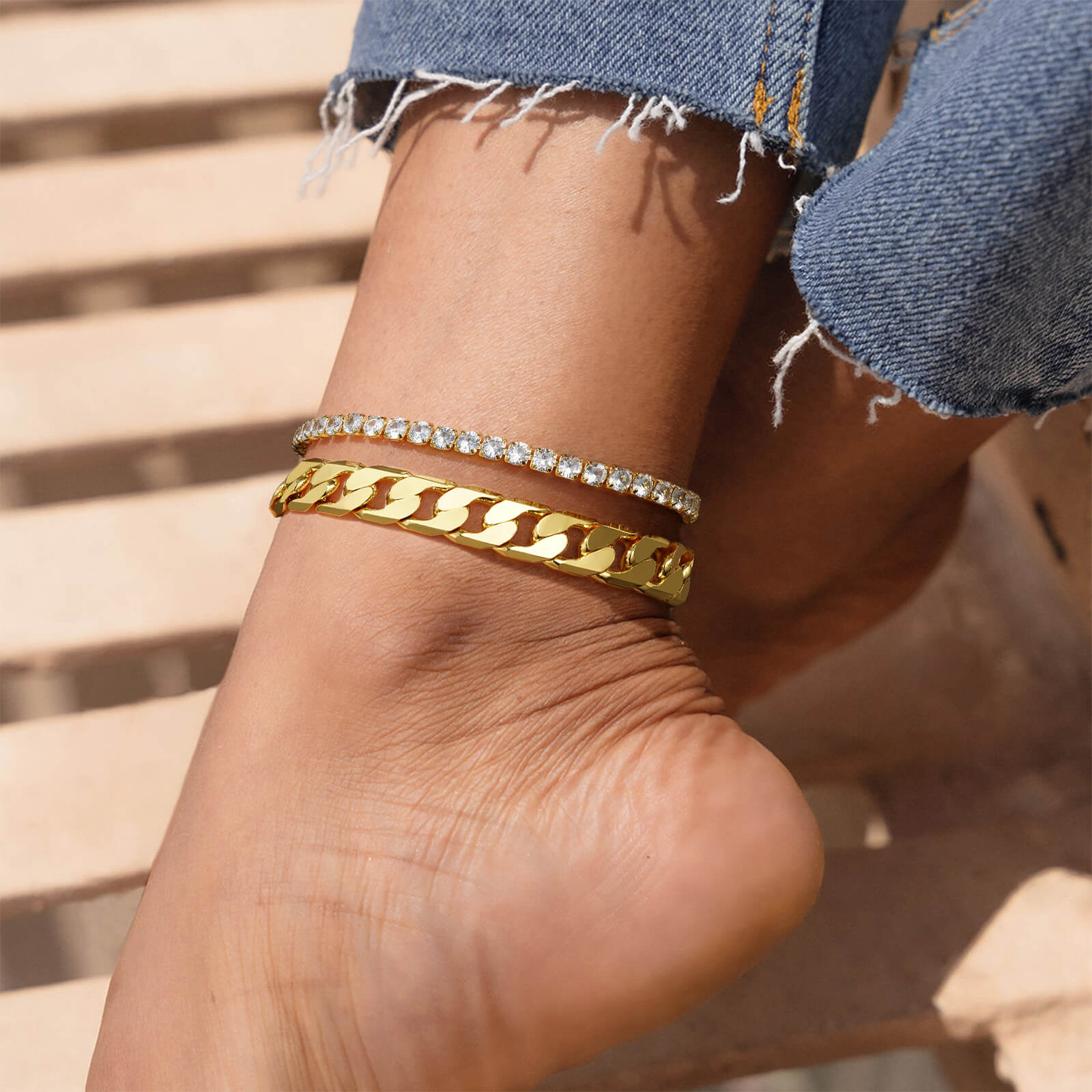 KissYan Gold Ankle Bracelets for Women,Chunky Cuban Link Chain Summer Beach Foot Jewelry