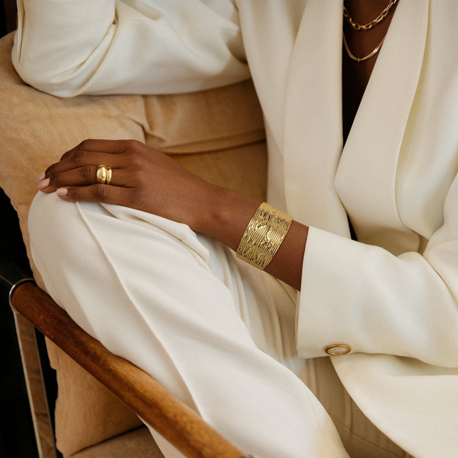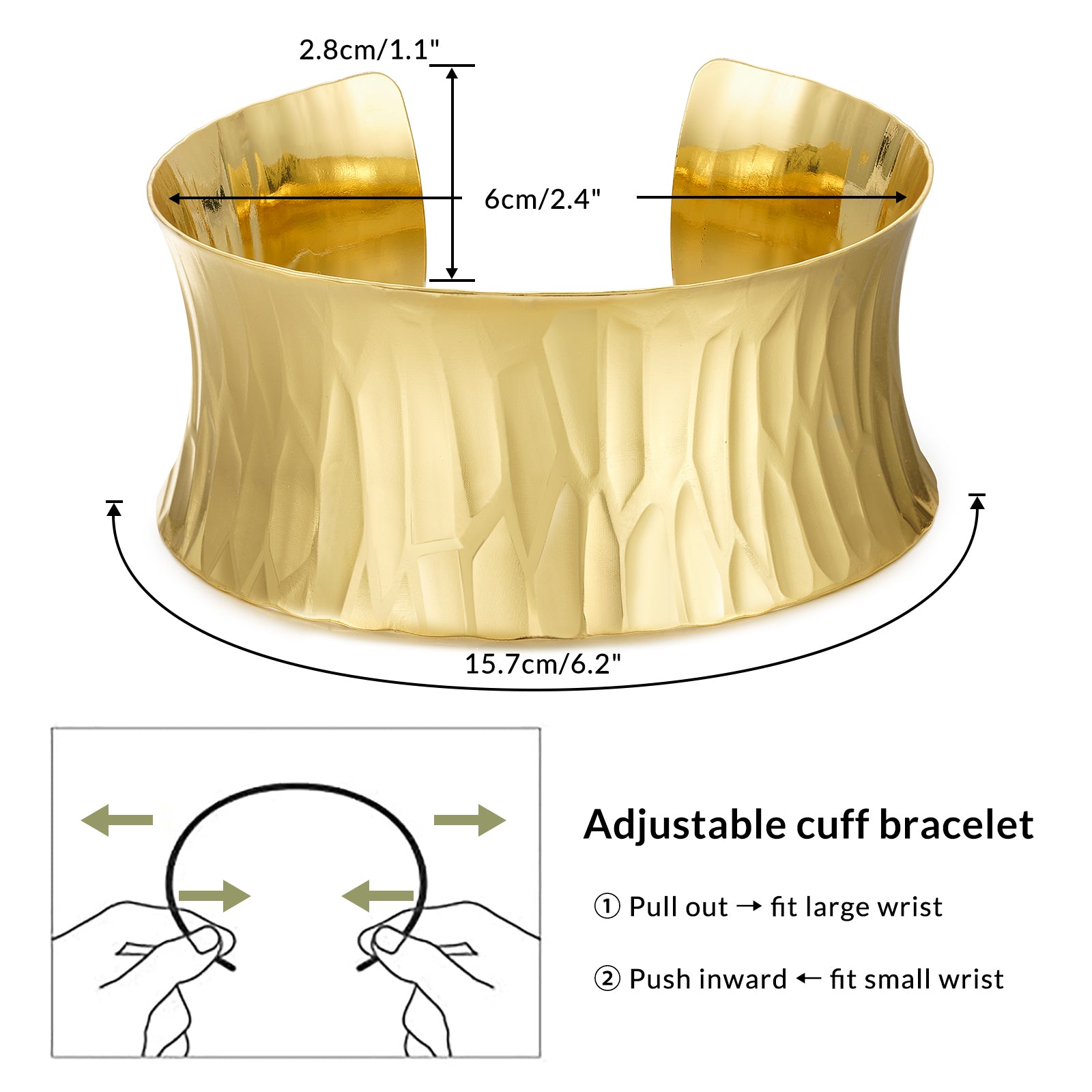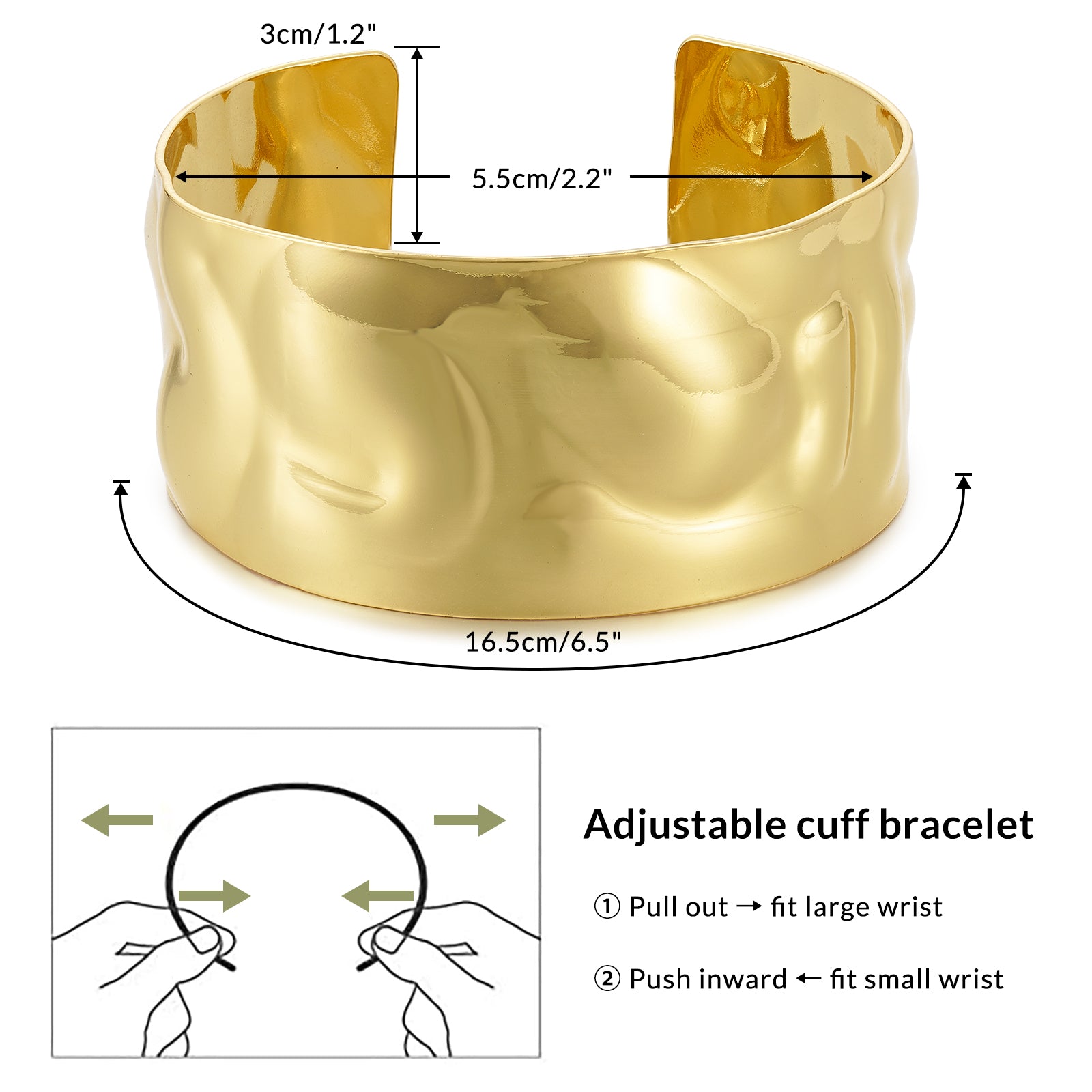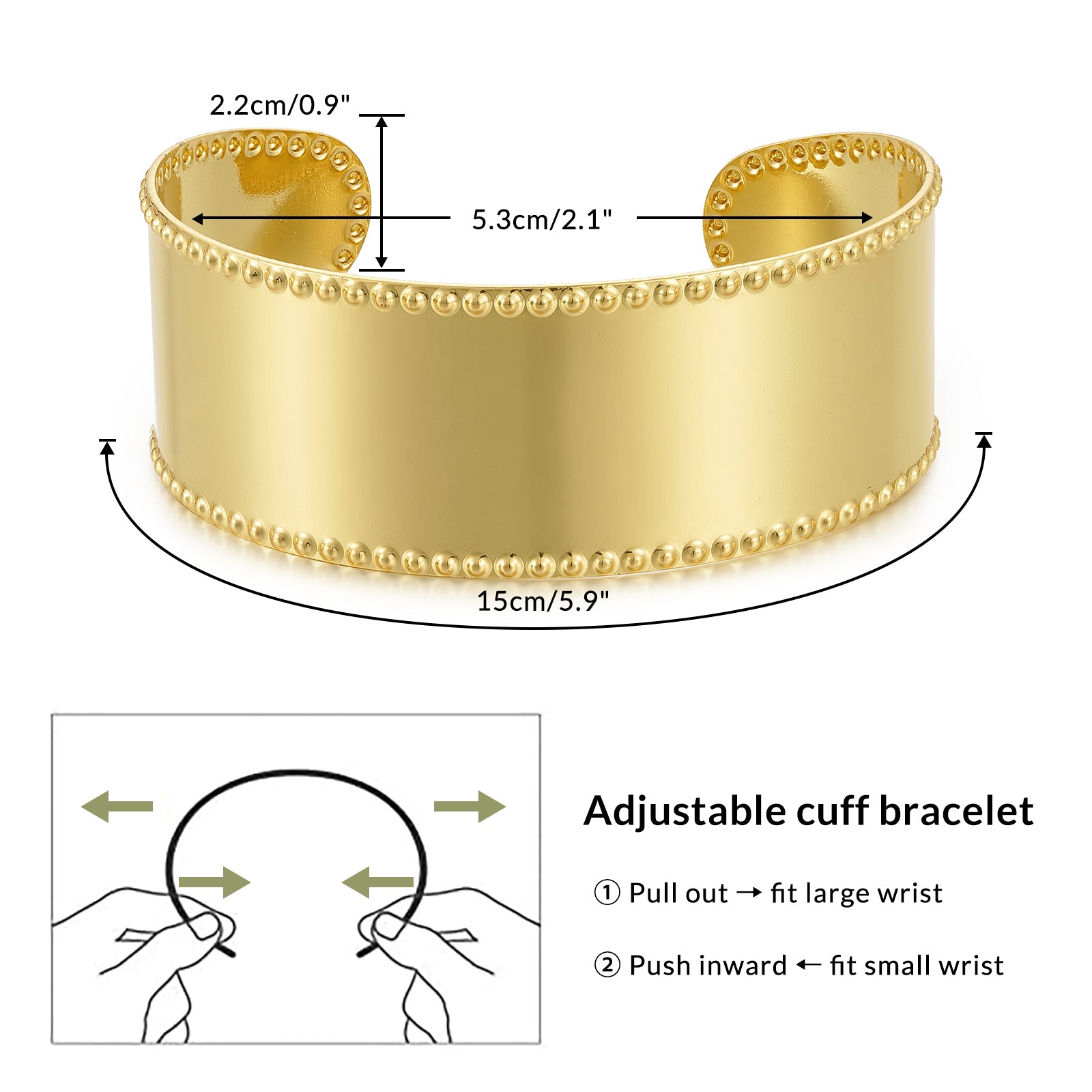 【HIGH QUALITY】This cuff bracelet is made of high-quality brass, plated with 14K gold. The gold layer is durable, resistant to peeling and maintains its shine, making it easy to clean. Brass, known for its strength and durability, resists scratches and wear.
