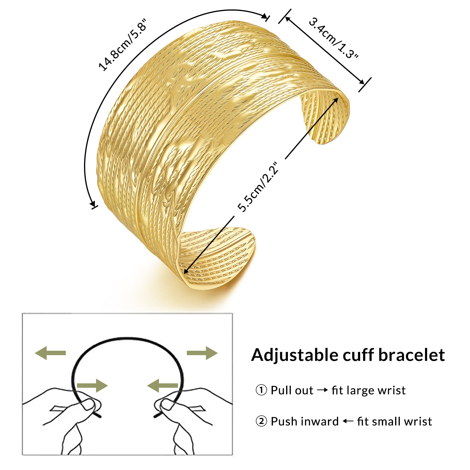 【FLEXIBLE ADJUSTMENT】 This women's bangle bracelet features a classic and aesthetically pleasing open cuff design, allowing you to flexibly adjust the size until it fits your wrist perfectly. It is also easy to put on and take off.
