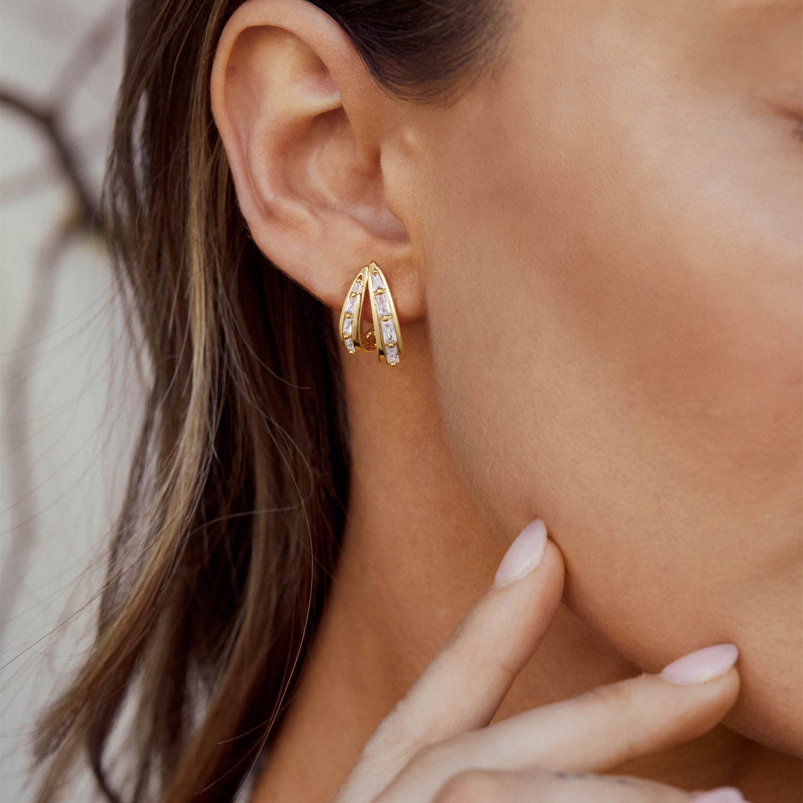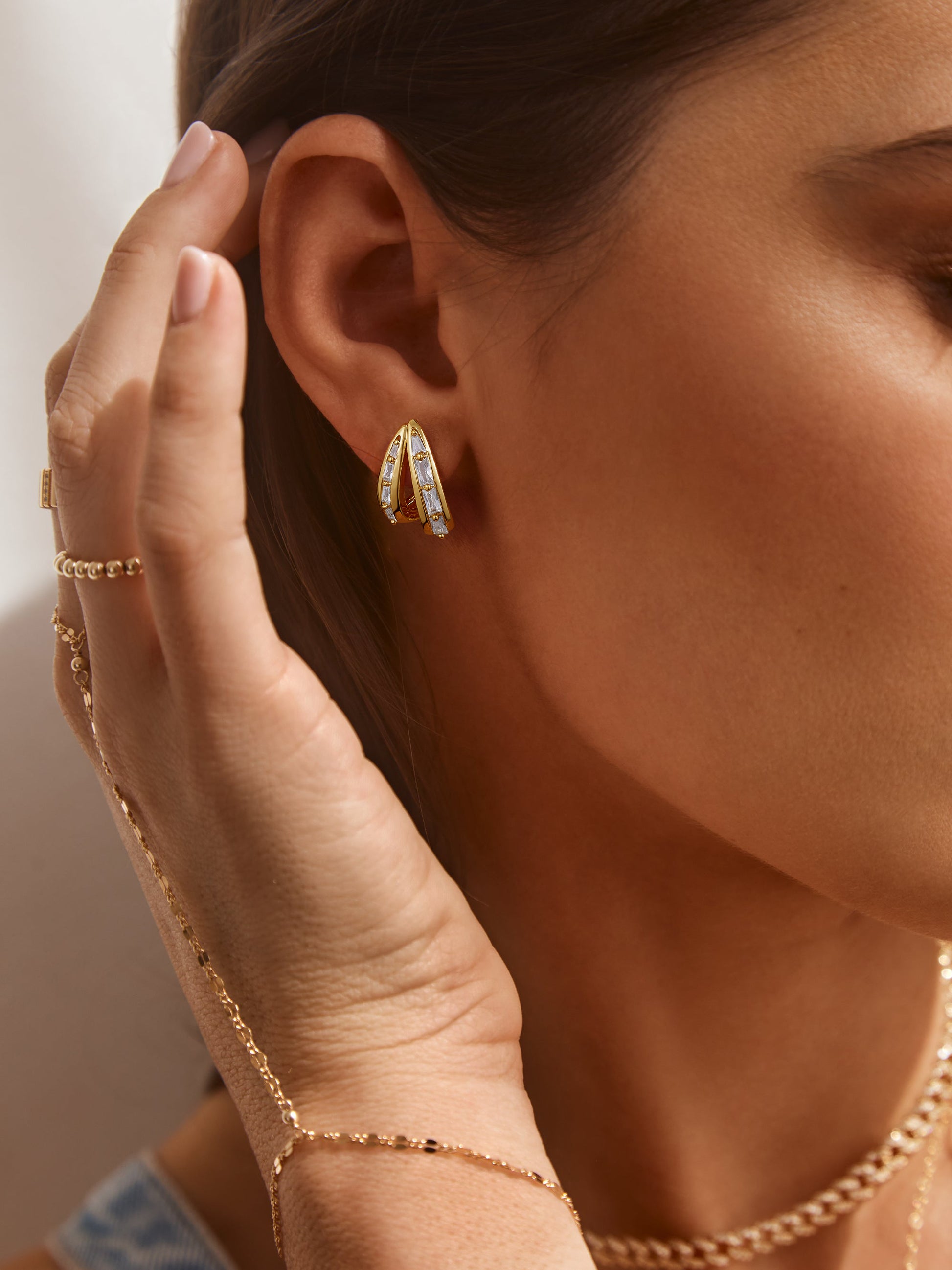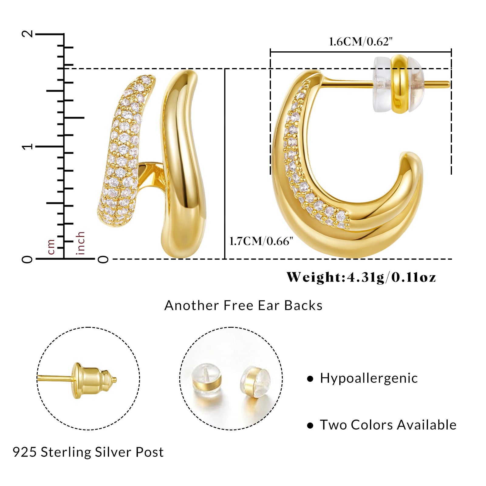 - Superior Material: The gold hoop earrings set is made of 5A grade precision-cut double-row zircon. Available in gold and silver, not easily fading. Earring needles are made of S925 silver, hypoallergenic, with a simple needle design, easy to insert and fix