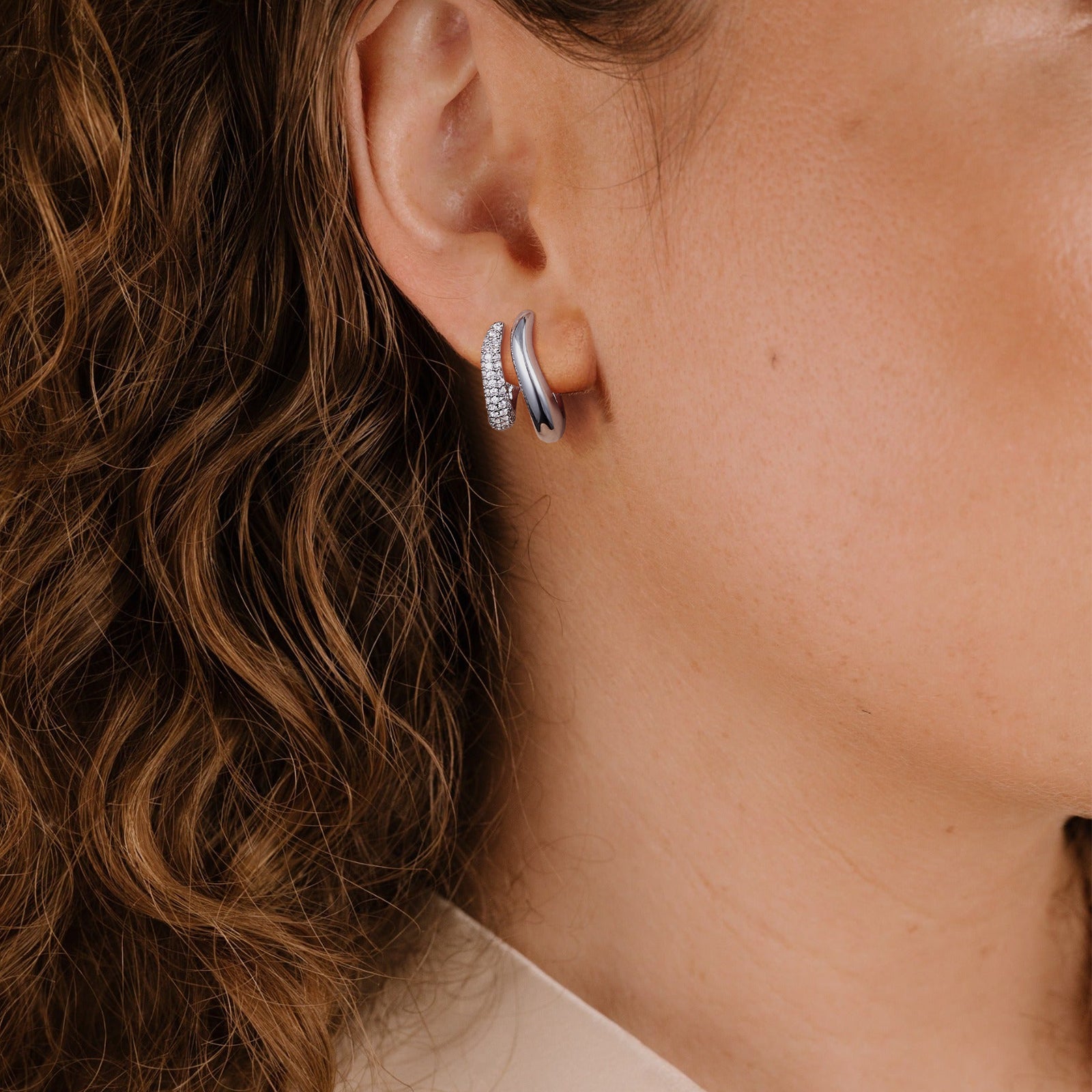 KissYan Hoop Open Double Row Cubic Zirconia Chunky Earring