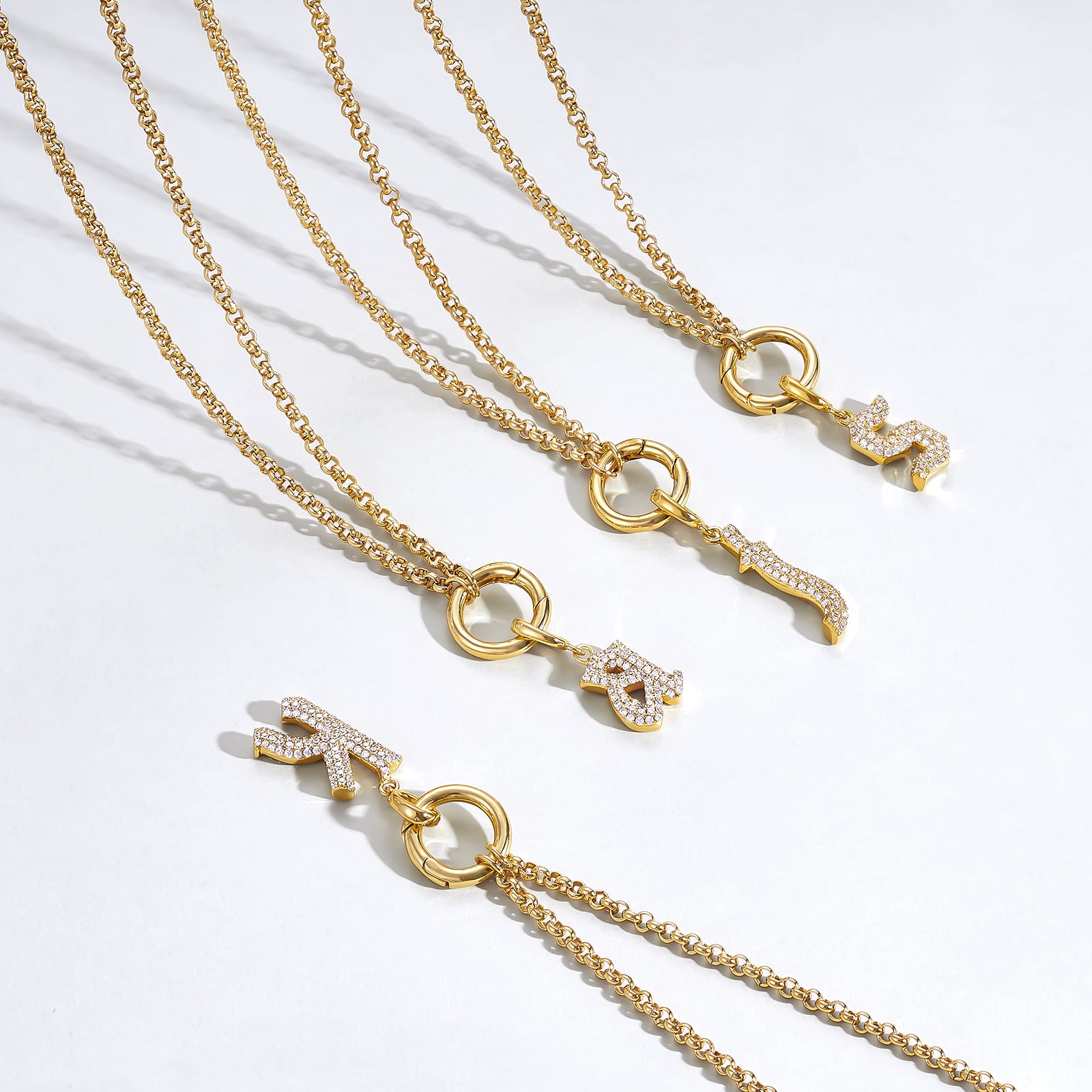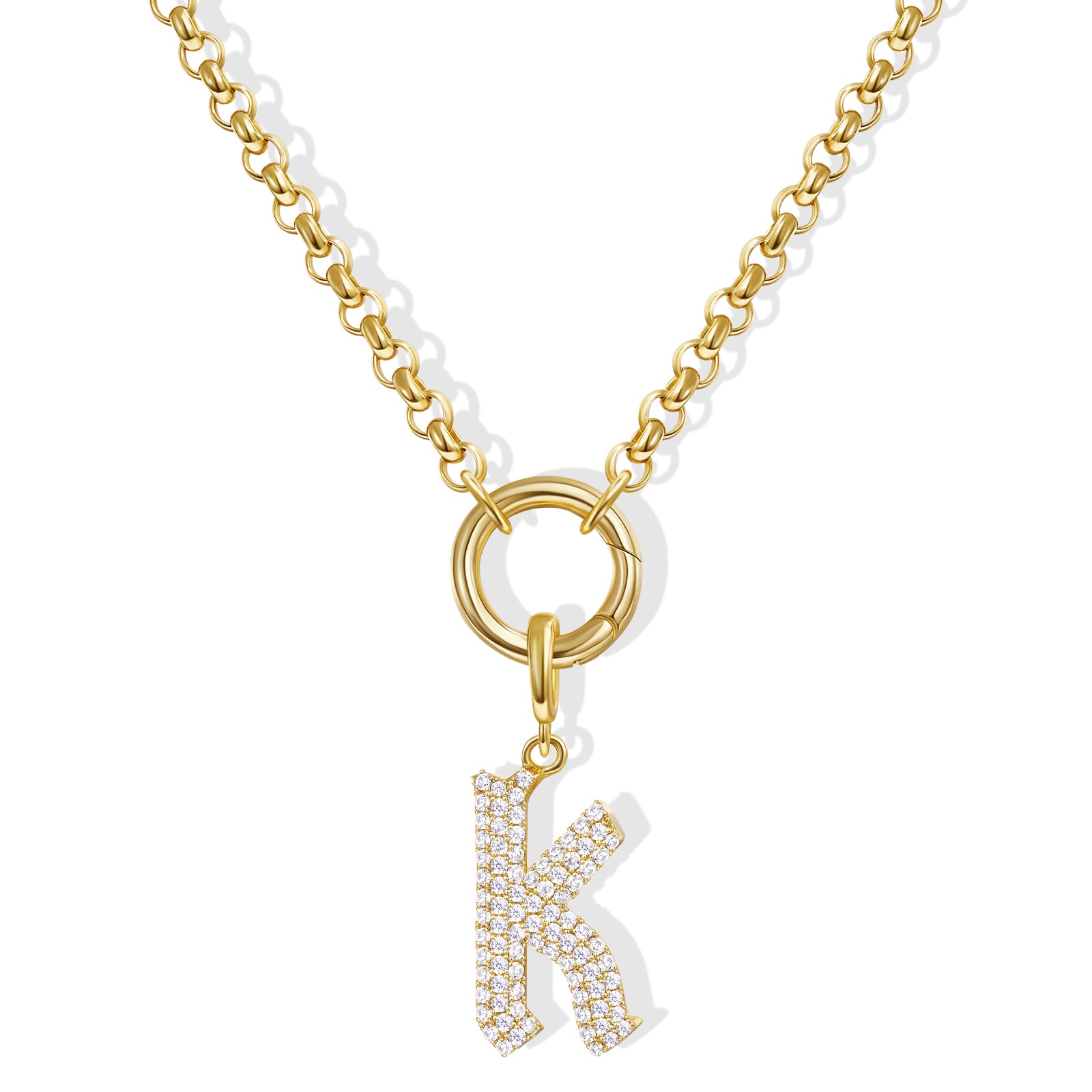 - Gothic Glam: Diamond-paved Gothic letters shine on a tangle-free box chain, crowned with a versatile circle. Medieval elegance meets modern edge