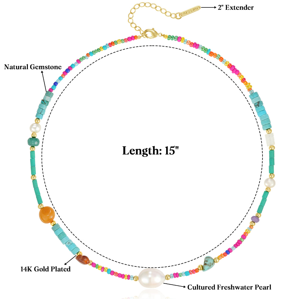 Natural Beaded Gemstone Colorful & Pearl Choker Necklace