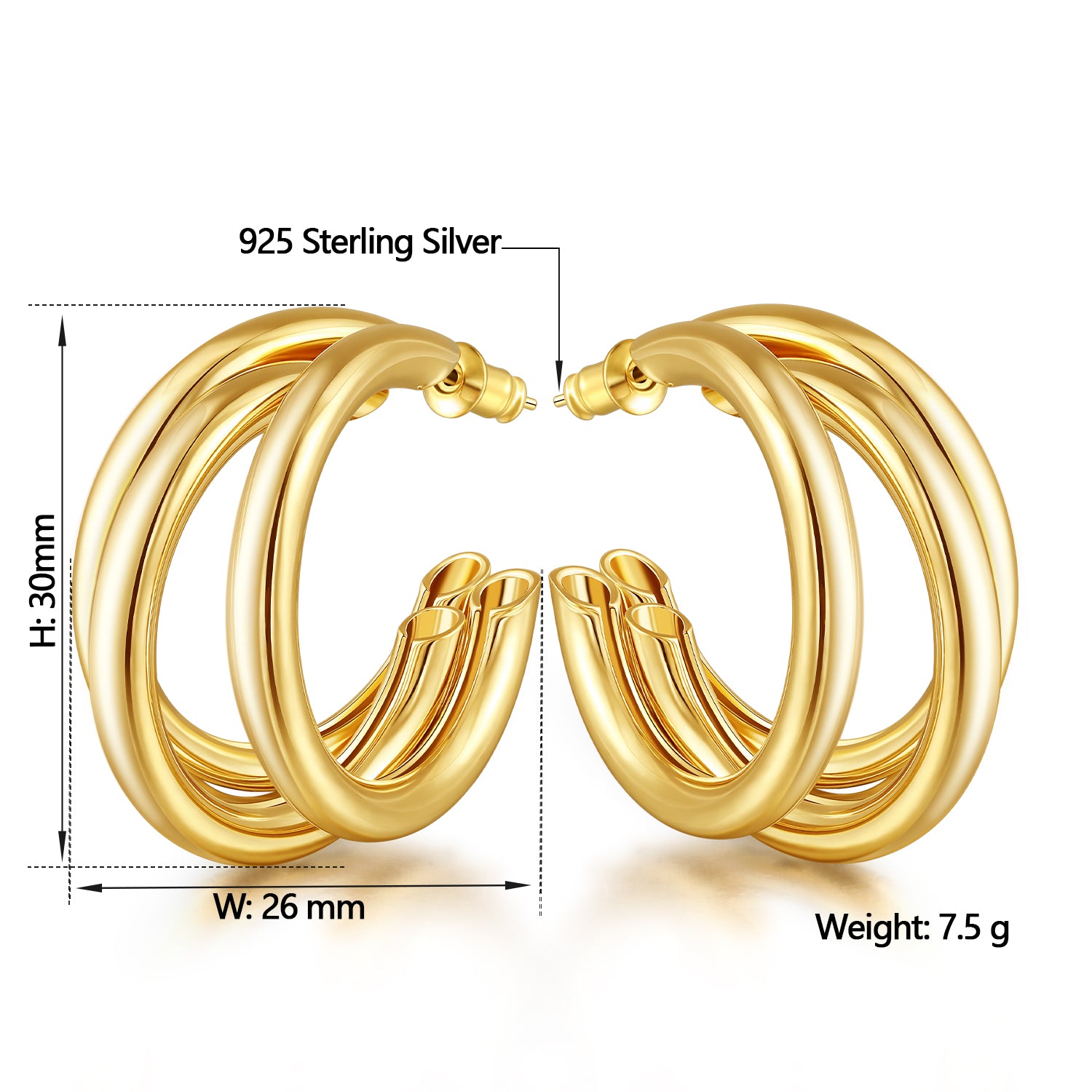 Thick Gold Chunky Hoop Earrings Lightweight Huggie Hoops For Women